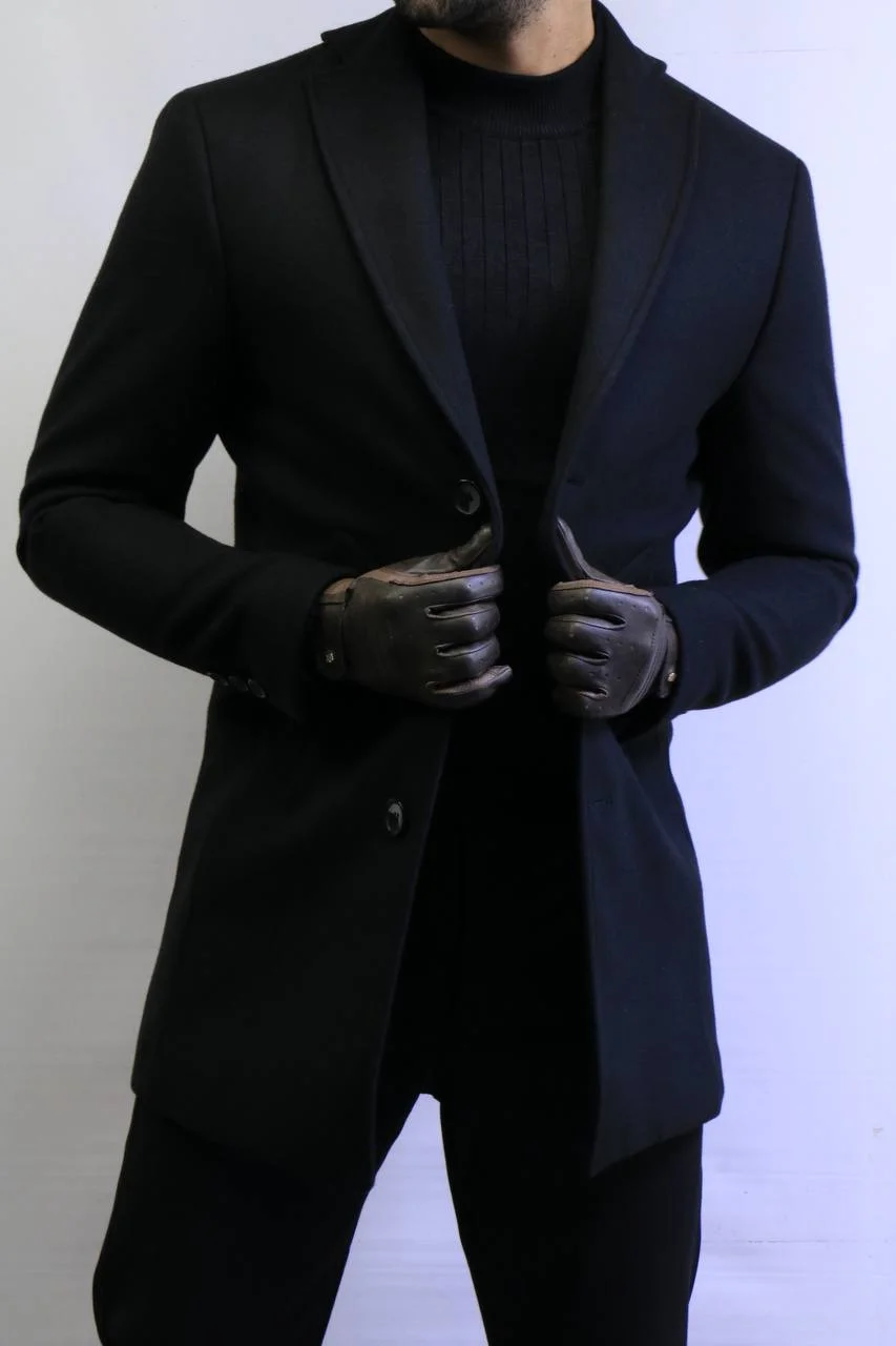 Black Wool Coat —Premium Classic Fit , Modern Minimal Cut