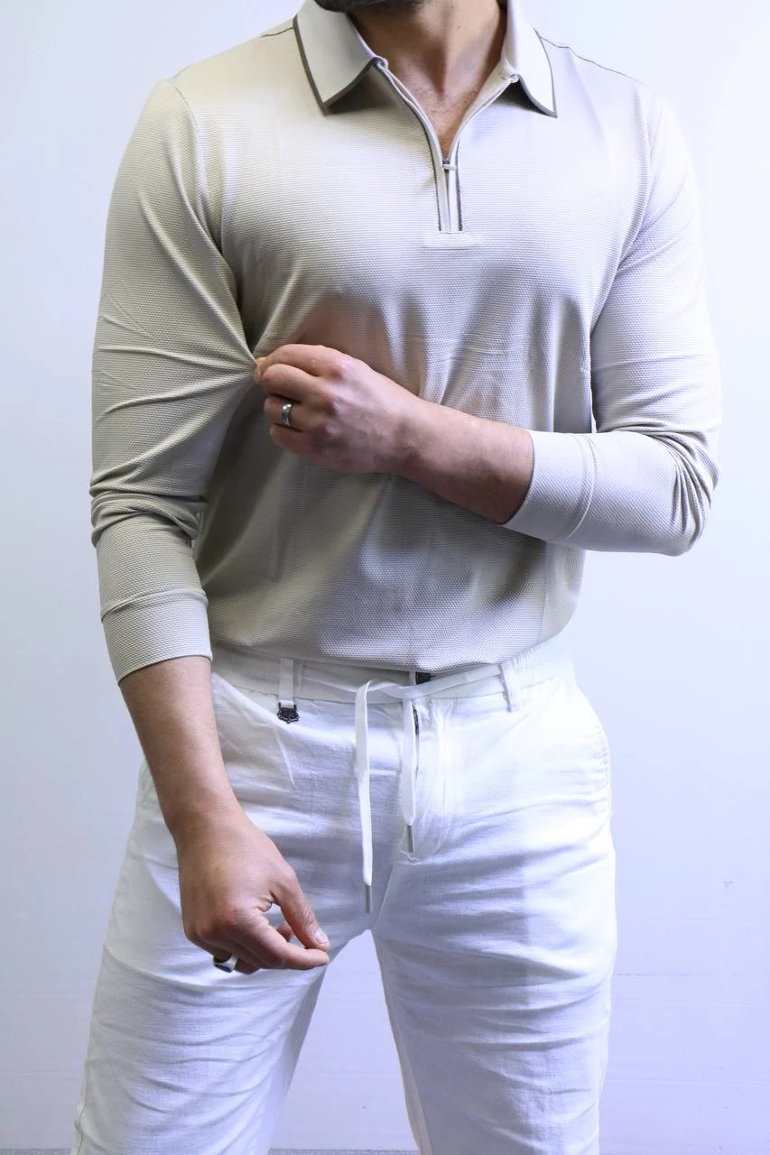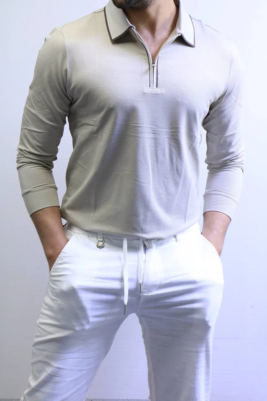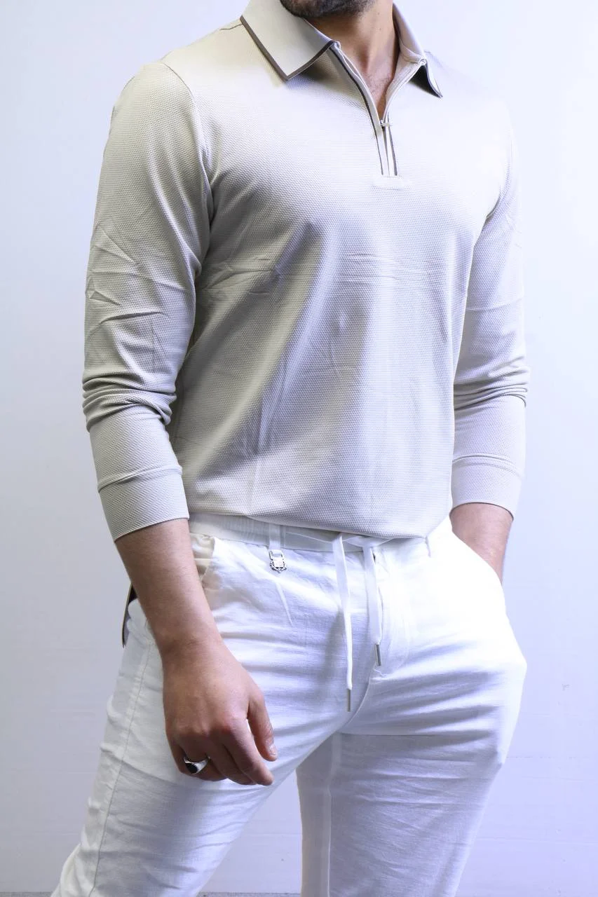 Men’s Knit Polo Shirt Long Sleeve – Slim Fit Elegant Style – ZAC