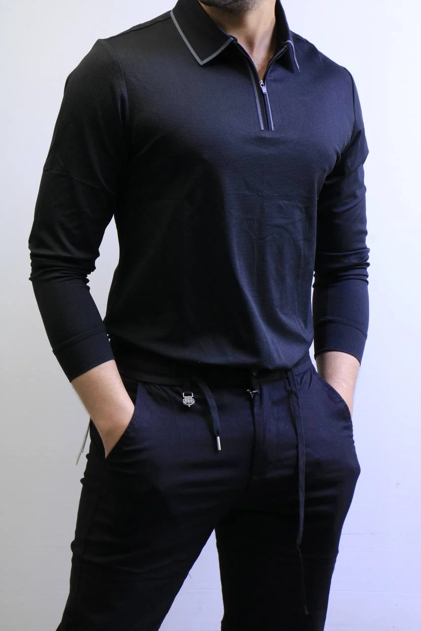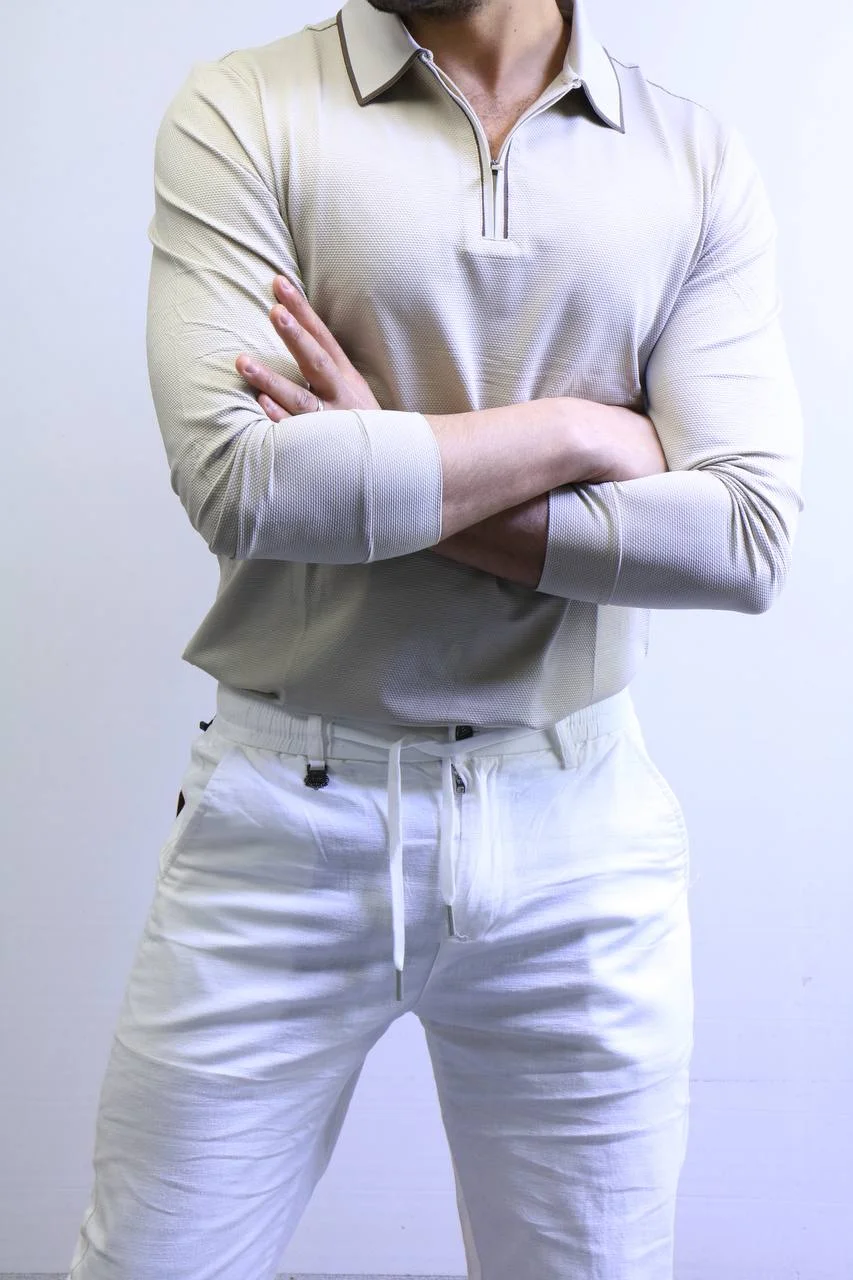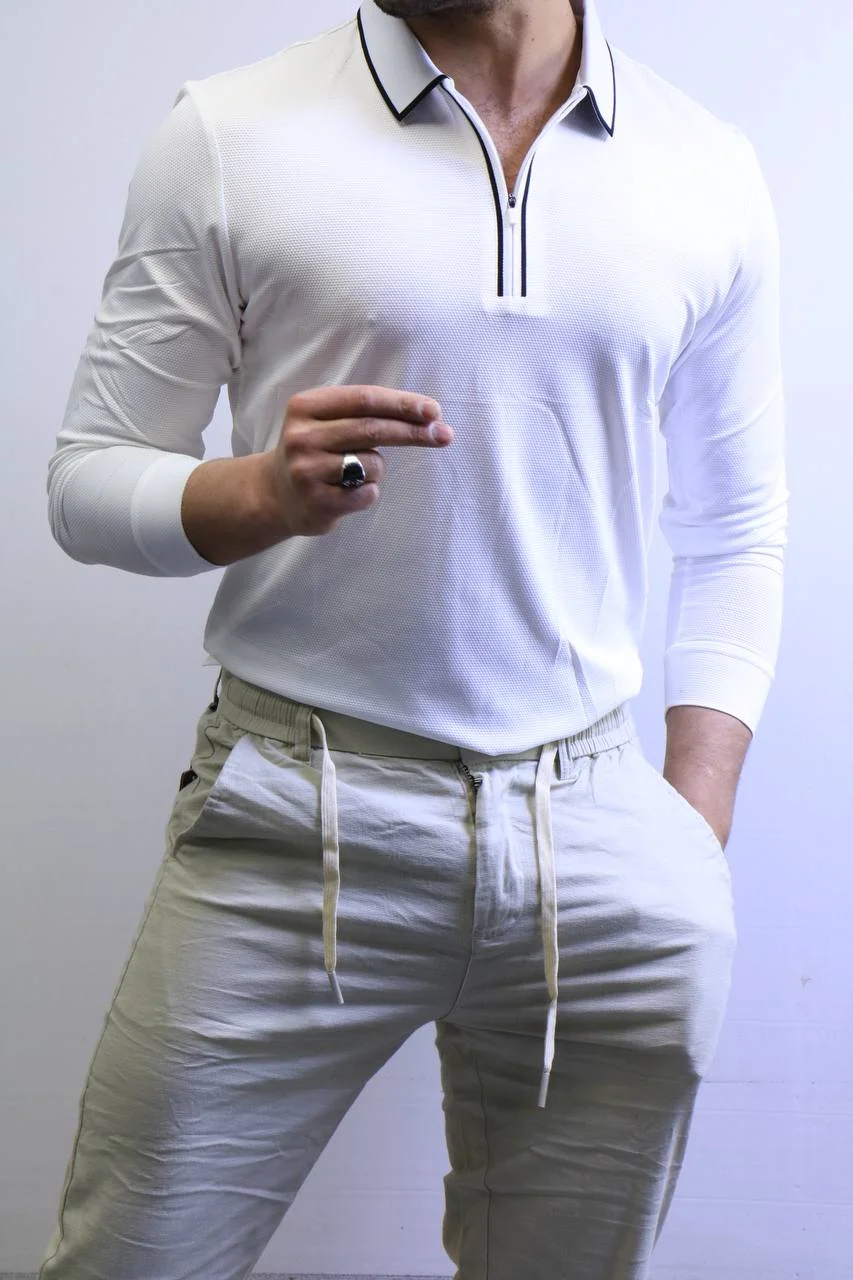 Men’s Knit Polo Shirt Long Sleeve – Slim Fit Elegant Style – ZAC