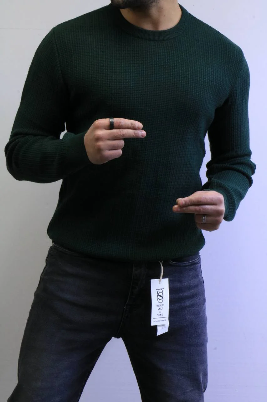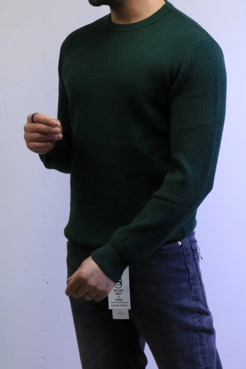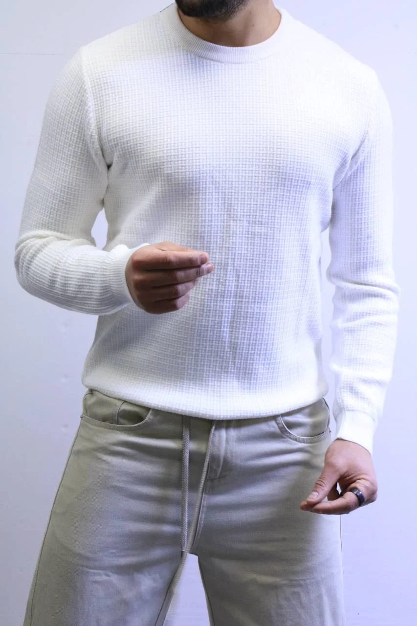 Men’s Slim Fit Waffle Knit Sweater – Premium Crew Neck