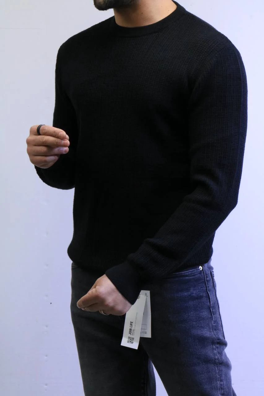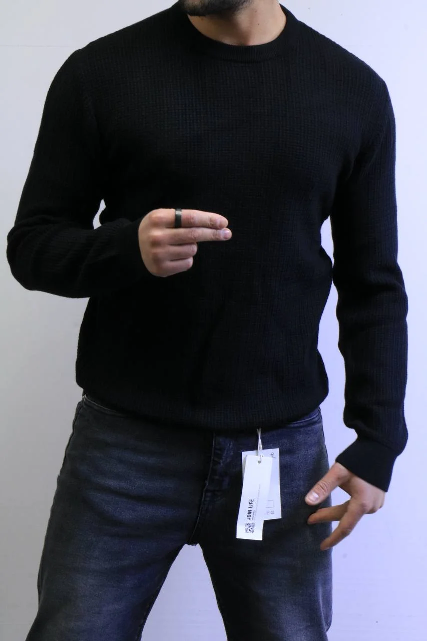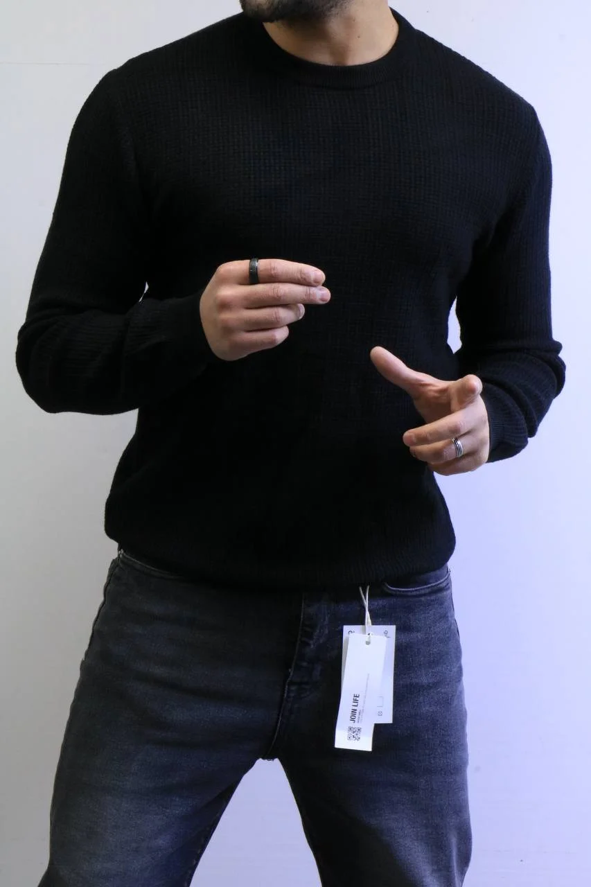 Men’s Slim Fit Waffle Knit Sweater – Premium Crew Neck